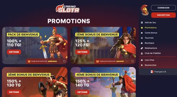 Jouez sur Slota Casino : bonus clairs, large choix de jeux et services bancaires en CAD