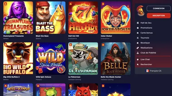 Notre lobby est axé sur la variété, avec 8 259 titres répartis dans les principales catégories. Vous pouvez parcourir par type, studio ou popularité, ce qui aide quand vous voulez quelque chose de familier ou tester une nouveauté. Nous ajoutons aussi régulièrement des jeux à mesure que les fournisseurs publient du nouveau contenu ; le filtre « nouveau » vaut donc la peine d’être consulté souvent.