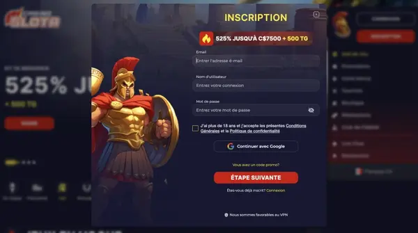 La création de compte sur Slota Casino est conçue pour être rapide, avec les étapes importantes affichées clairement. Vous pouvez vous inscrire depuis le Canada en quelques minutes, puis passer à la vérification lorsque vous êtes prêt à déposer ou retirer. Pour un accès fluide ensuite, conservez votre adresse e-mail et votre mot de passe de manière sécurisée.